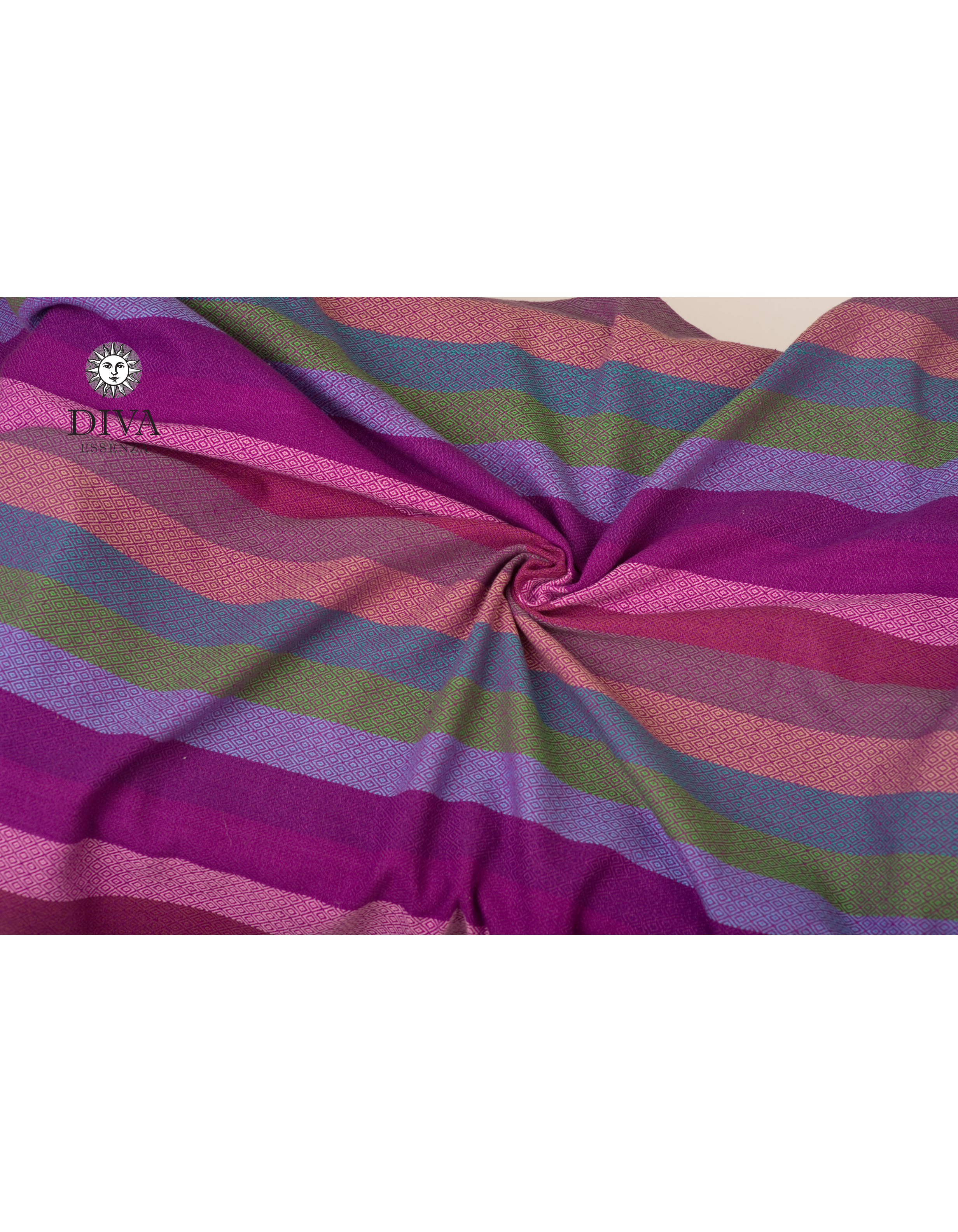 Diva Essenza 100% cotton wraps in twill weave (stripes) are medium-thick, with special mechanical pre-treatment to make it soft right out of the box, suitable for both newborns and toddlers.