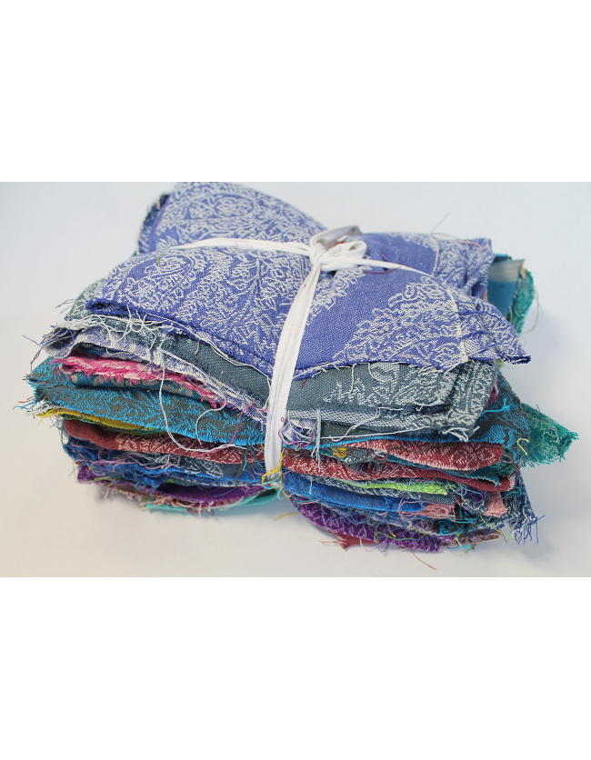 Wrap scraps is the ideal material for all kinds of sewing: backpacks, purses, toys, baby shoes and many other items!