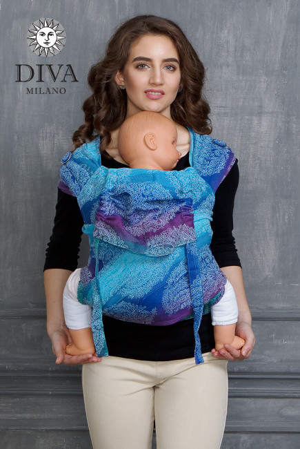 The Diva Mei Tai Slings are produced from baby wraps. This carrier is easy to use, can be worn with both new-borns and toddlers, and it just looks great!