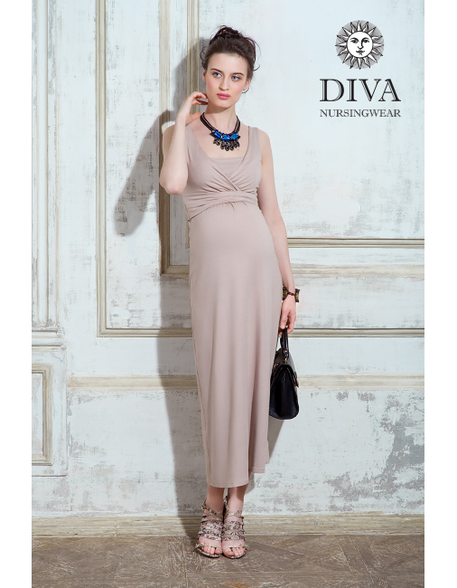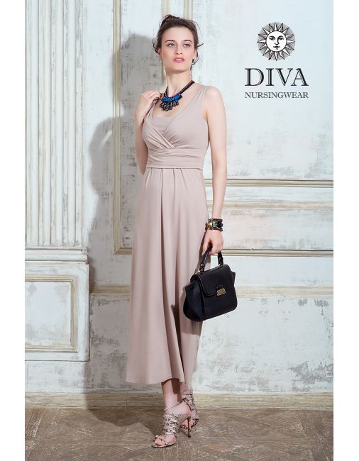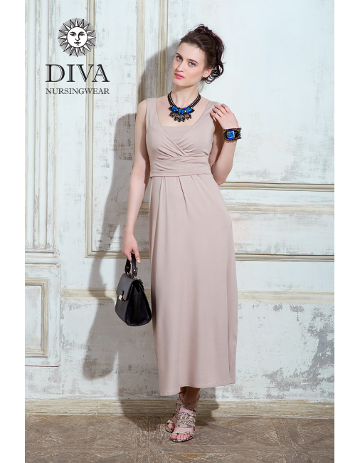 Nursing Dress Diva Nursingwear Alba Maxi Sleeveless, Grano