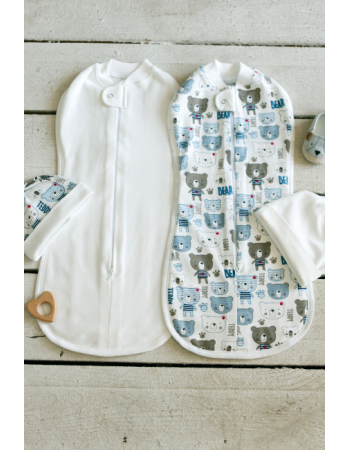 A swaddle pod is perfect for babies from birth up to 6-9 months. It helps to ensure safe and calm sleep of your baby. The set includes swaddles and hats that suit in color, so you can create your own combinations and styles for your kid.